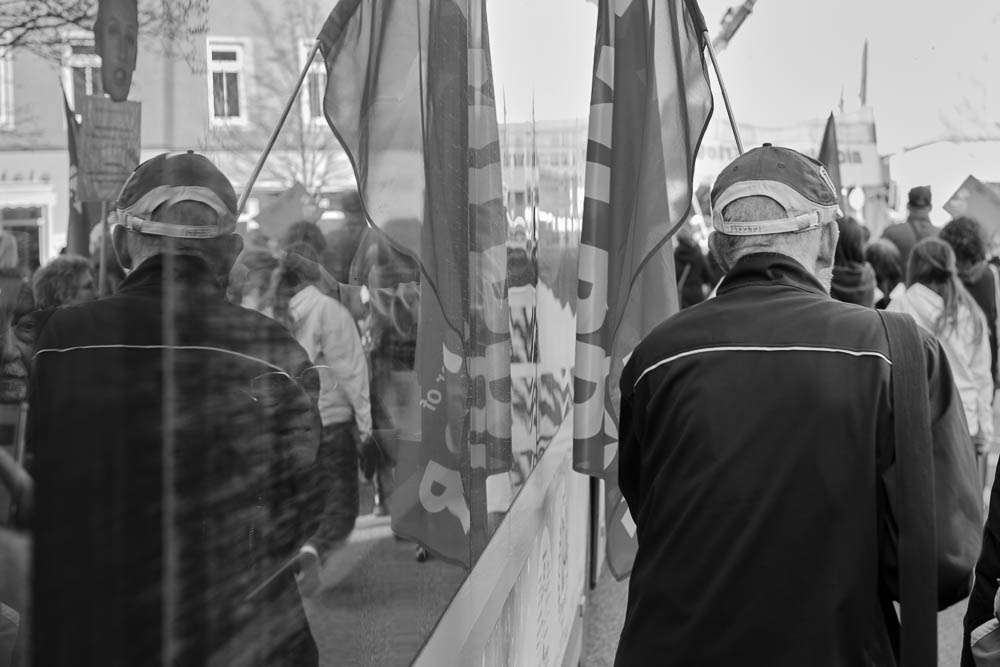 Streiks und Politik in den Straßen Münchens Der März war geprägt von einem bewegten politischen Kalender. Die ver.di-Warnstreiks brachten die einsame Geometrie der Stadt in meinen Fokus, während die Atmosphäre der bevorstehenden Kommunalwahlen jeden Winkel der Stadt in eine politische Bühne verwandelte.
