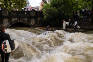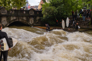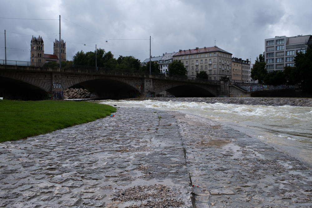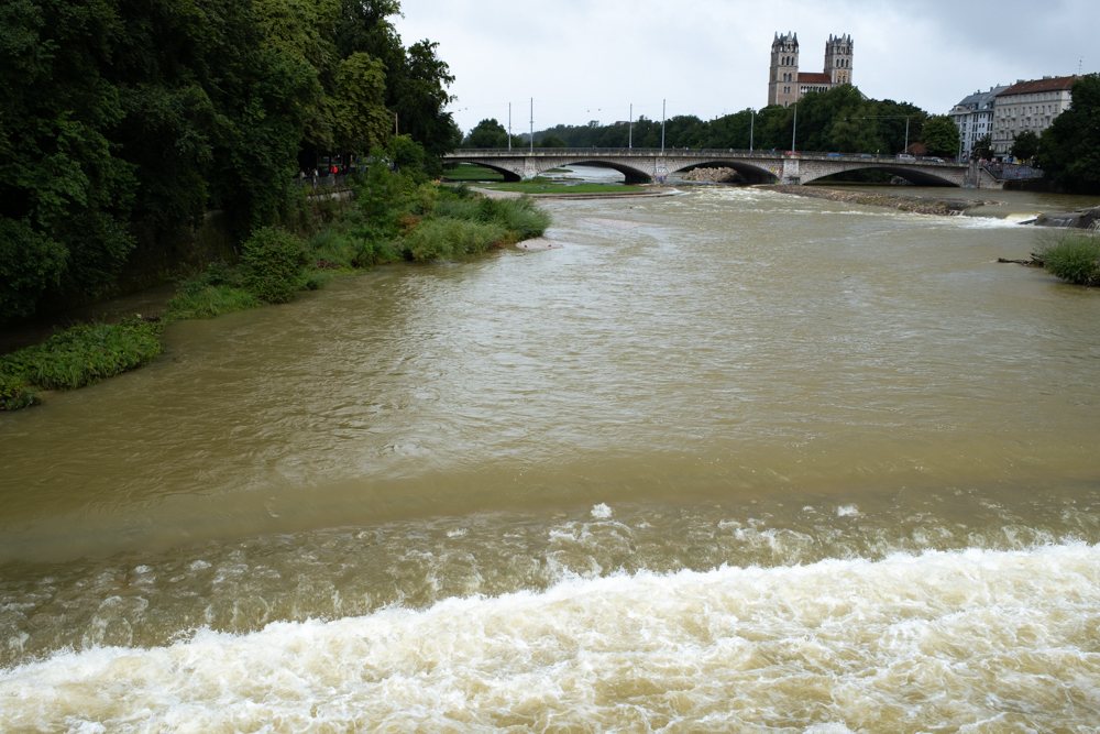 Haziran ayından bu yana kırık parmağım yüzünden evde kapalı kaldıktan sonra nihayet fotoğraf makinemi, yani Fujifilm X100 VI’yı, alıp sokaklara çıkabildim. Münih, son 24 gündür aralıksız yağan yağmurlarla ıslanmış, adeta bambaşka bir kimliğe bürünmüştü. Şehrin hayat damarı olan Isar Nehri ise bu yoğun yağışlar sonucunda taşma noktasına gelmişti.