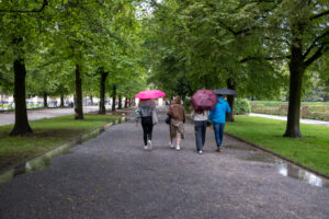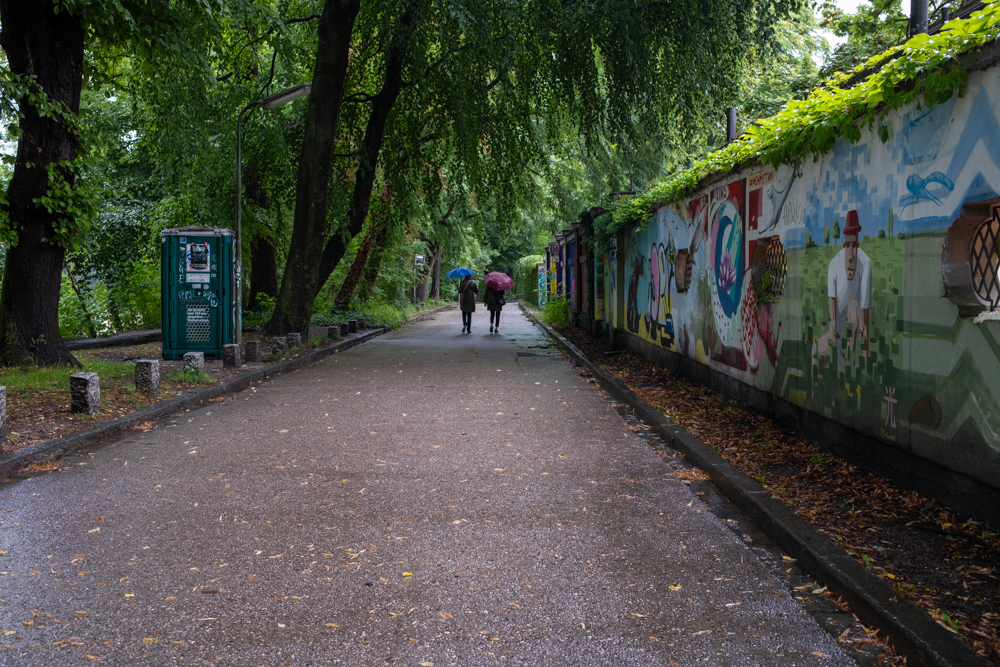 Entgegen den Erwartungen waren die Straßen trotz der sonntäglichen Trägheit und des Regens ziemlich belebt. Obwohl der Himmel grau war, belebten die Menschen, die nach draußen wollten, die Atmosphäre. Einige gingen spazieren, andere fuhren Fahrrad und wieder andere joggten in ihren Trainingsanzügen. Eine der interessantesten Szenen war eine Person, die unter einer Brücke Schutz suchte und sich in ein Buch vertiefte.
