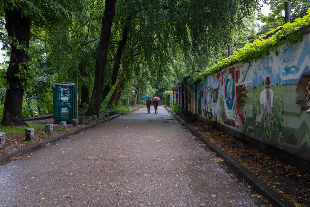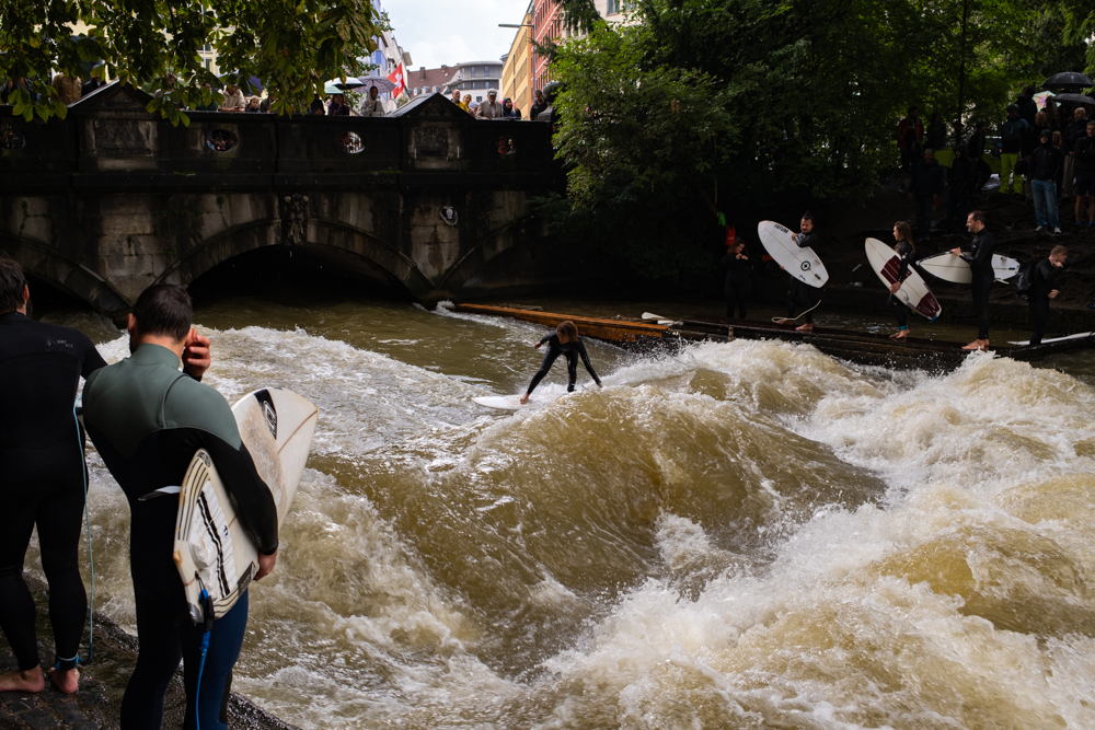 Seitdem mein Zeh im Juni gebrochen war, war ich zu Hause eingesperrt. Endlich konnte ich meine Kamera, die Fujifilm X100 VI, schnappen und auf die Straße gehen. München war die letzten 24 Tage ununterbrochen nass vom Regen, es hatte sich in ein völlig neues Wesen verwandelt. Die Isar, die Lebensader der Stadt, stand aufgrund der starken Regenfälle kurz vor dem Überlaufen.
