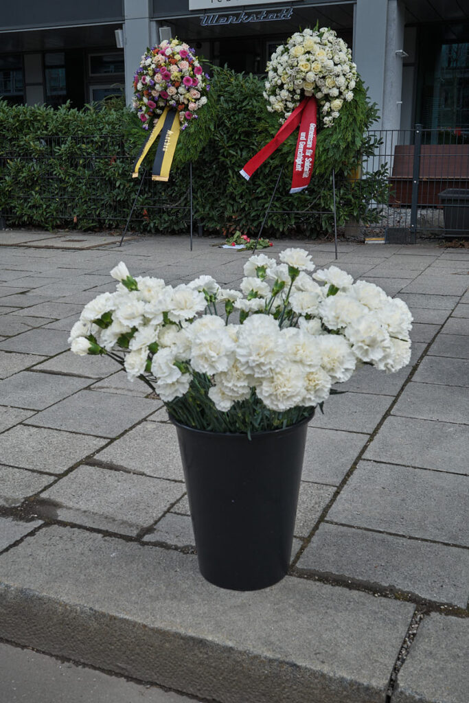 Bei der Gedenkfeier hielten Dominik Krause als Vertreter des Oberbürgermeisters und Claudia Weber, Vorsitzende der Gewerkschaft Ver.di München, eine Rede.